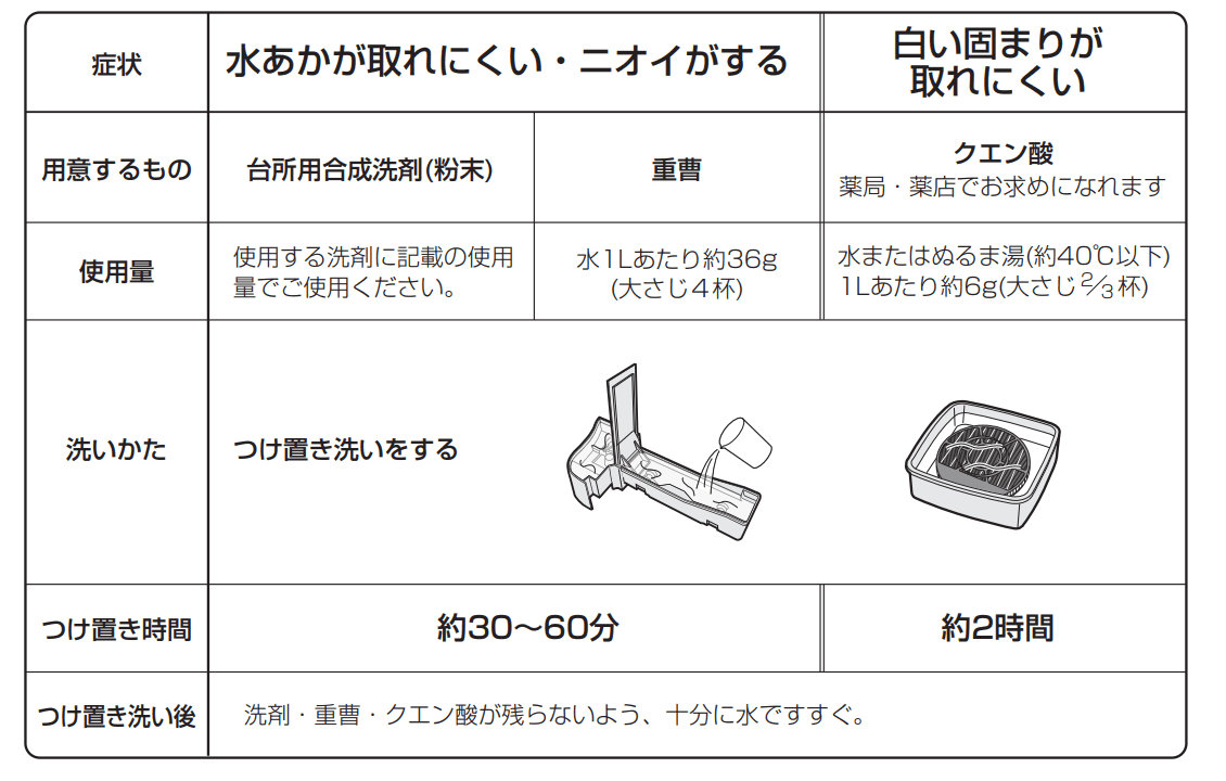 水や加湿フィルター、給水トレーに赤色や黄色、白色の汚れなどがつくことがありますが、 水道水中のミネラルや鉄分であり、異常ではありません。
